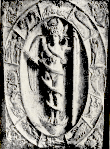 無限の時間の擬人化。東洋の荒ぶる神をローマ風に美化していて、獅子の頭部は胸の部分に施されている。ヒポリュトスはこう述べたという。「クロノスは万物を破壊するところの水色をした力である (ユング『アイオーン』) 。」