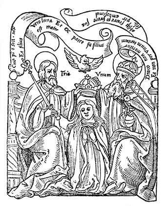 足下に下界の三位一体を示す3つの頭を持つ蛇、